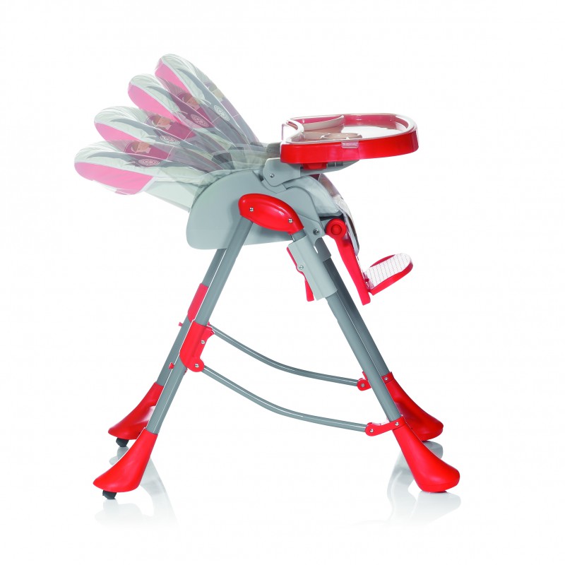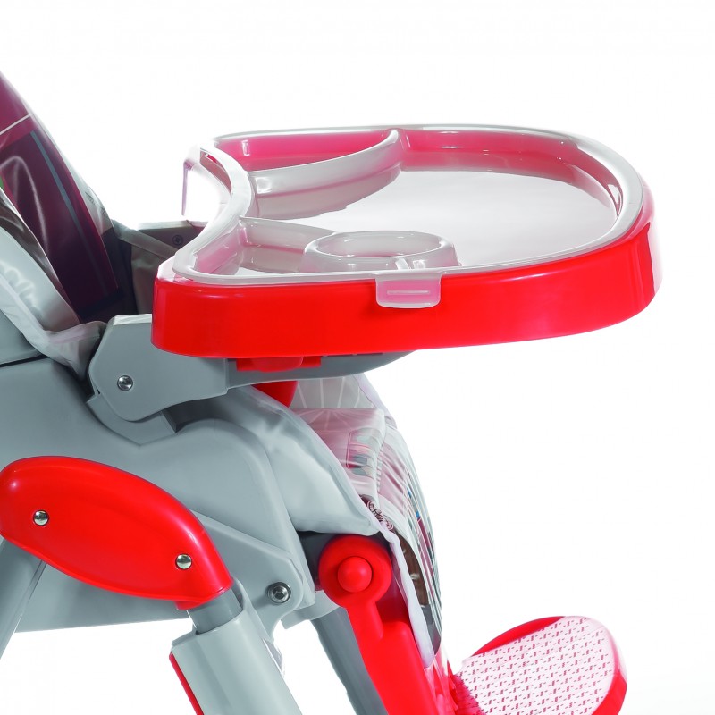 Doble bandeja de 60x43,5 cm simplificada para facilitar las operaciones de introducción en plato bandeja. Plano de apoyo de la bandeja ajustable en varias posiciones, se puede quitar la bandeja para acercar la trona a la mesa.